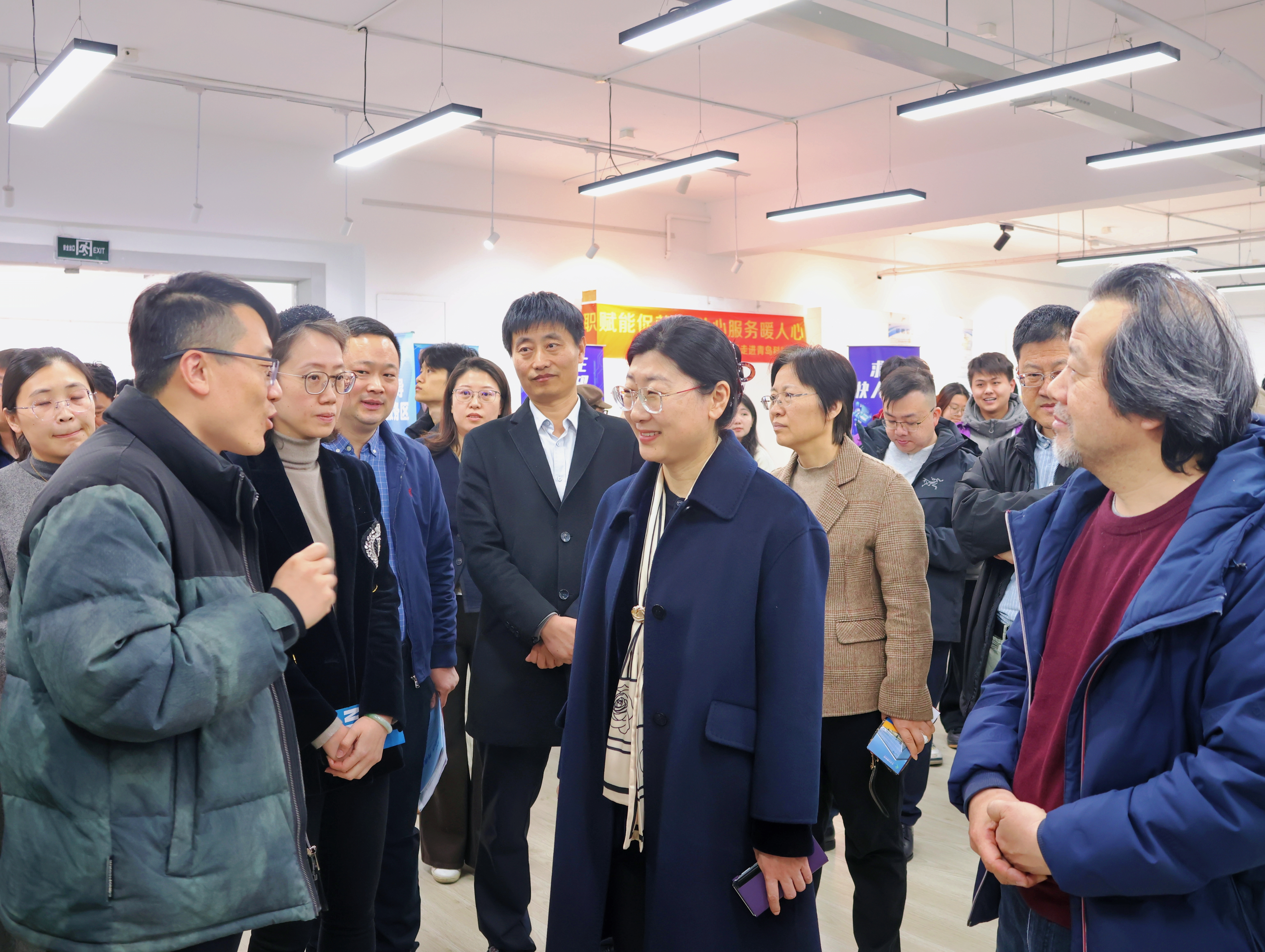 、传媒学院、外国语学院、体育学院2026年春季校园招聘会在崂山校区美术馆举行。学校党委常委、副校长王震亲临招聘会现场,与用人单位及师生亲切交流,听取企业对学校人才培养的需求与建议。