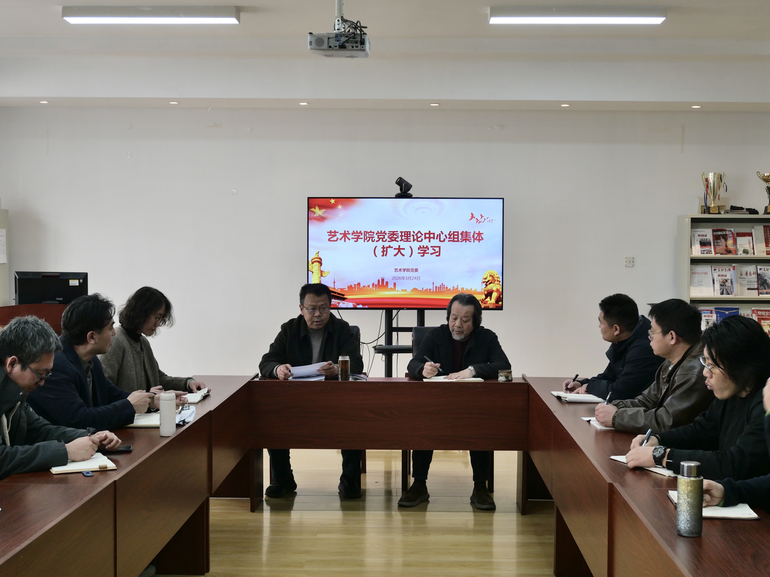 党委理论学习中心组于213会议室开展集体(扩大)学习。学院领导班子、各党支部书记参会,会议由党委书记刘庆主持。